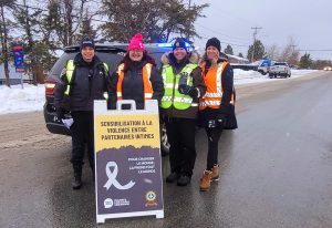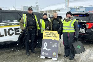 Le 26 novembre dernier, se déroulait à la grandeur de la province des opérations de prévention en matière de violence conjugale.  Majoritairement sur des axes routiers, les policiers de la SQ étaient accompagnés de partenaires pour remettre aux citoyens les dépliants de SOS violence conjugale et de ressources d’hébergement pour femmes.