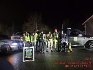 Opération des membres de la MRC Beauce-Sartigan avec les agents de la faune du secteur qui a eu lieu le 21 novembre 2025 en soirée – En résumé : trois policiers SQ, un stagiaire en technique policière et trois agents de la faune ont participé.