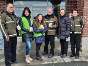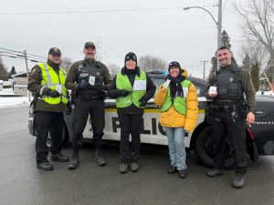 Dans le cadre des huit jours de sensibilisation à la violence entre partenaires intimes, la Sureté du Québec, en collaboration avec les Maisons d’Hébergement, l’organisme R E B A T I R ainsi que le bureau du Directeur des poursuites criminelles et pénales du Palais de justice de Saint-Joseph-de-Beauce a participé le 26 novembre dernier à une ONCP-VPI (Opération national concertée de prévention en matière de violence entre partenaires intimes). Il s’agit de réaliser des points de contrôles routiers, des kiosques, etc. afin de sensibiliser la population. En effet, le Centre de Services MRC de Saint-Georges a effectué trois ONCP-VPI sur le territoire. Le 26 novembre, les deux premières activités ont été réalisées entre 7h30 et 8h30 Am. La première sur la 1re avenue face à l’aréna de Saint-Georges en collaboration avec des intervenantes de la maison Havre l’Éclaircie, des procureurs de R E B A T I R ainsi que des patrouilleurs et officiers de la Sureté du Québec. Plus de 800 feuillets de sensibilisations ont été distribués. La deuxième a été réalisée à Lac-Etchemins sur la route 277 en collaboration avec des intervenantes du Havre L’Éclaircie et de patrouilleurs de la Sureté du Québec ainsi qu’un Officier. Près de 400 feuillets ont été distribués. La dernière et troisième a été réalisée entre 11h30 et 12h30 aux portes du centre d’achat de Saint-Joseph-de-Beauce en compagnie des intervenantes du Havre Éclaircie, de Me Marie-Andrée Veilleux, procureure de la couronne à Saint-Joseph de Beauce ainsi que des policiers et Officier de la sureté du Québec. Près de 250 feuillets de sensibilisation à la violence entre partenaires intimes ont été distribués aux clients. Il s’agit d’un bel engagement de la part des tous. Beau succès.