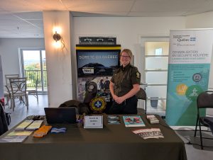 Dans le cadre de la journée internationale des ainés au Québec, la Sureté du Québec était présente à l’activité qui avait lieu à la résidence Château Sainte-Marie. Un rallye questionnaire à encouragé les participants à visiter la trentaine de kiosques des différents exposants. Six conférences étaient au programme de cette journée, dont celle « prévenir la fraude, ça débute avec vous » donnée par l’agente Mélanie Côté qui a fait salle comble. Nous vous invitons à participer et venir nous rencontrer au prochain salon des ainés sur le territoire du centre de service SQ Ste-Marie « Salon de la 2e jeunesse » qui aura lieu du côté de l’Espace citoyen de Montmagny, les 2 et 3 octobre prochain.