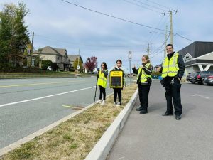 Le 14 octobre, vers 12 h, quatre élèves de l’école Vision Beauce ont eu l’opportunité d’utiliser le cinémomètre vivant, accompagnés de deux agents de la Sûreté du Québec, afin de sensibiliser les automobilistes à ralentir dans la zone scolaire.