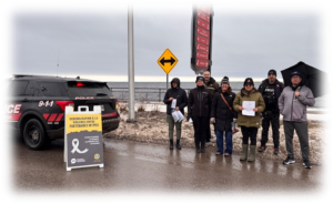 l’équipe ÉMIPIC du Domaine-du-Roy, le CALACS, l’Équipe Atshapi et les policiers de la Sécurité publique de Mashteuiatsh. Durant l’opération, les conducteurs ont été interpellés de manière conviviale et ont reçu des dépliants explicatifs ainsi que des ressources disponibles pour les victimes et leurs proches.