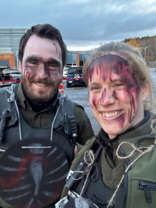 Dans le cadre de la fête de l’Halloween le 25 octobre dernier dans le secteur de Rouyn-Noranda, la Sûreté du Québec, ainsi que ses partenaires du Service de sécurité incendie de la Ville, ont assuré la sécurité des enfants costumés dans les rues en coordonnant la patrouille en véhicule et à pied des étudiants de la technique policière du Cégep de Rouyn-Noranda.
