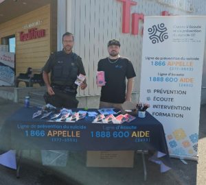 Le 4 septembre, une activité de sensibilisation et de prévention du suicide s’est tenue à L’Anse-Saint-Jean, dans le stationnement du marché Tradition. Le sergent Claude Fortin a participé à cette activité de remise de verrous de sécurité pour armes à feu, initiative visant à promouvoir la prévention et la sensibilisation au suicide. Il était accompagné de Maxime Villeneuve, intervenant.