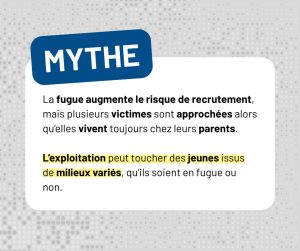 Il est essentiel de rappeler que le consentement d’une personne mineure n’est jamais valide dans un contexte d’exploitation sexuelle. C’est pourquoi les situations d’exploitation sexuelle de mineurs sont traitées en urgence par les services de police.