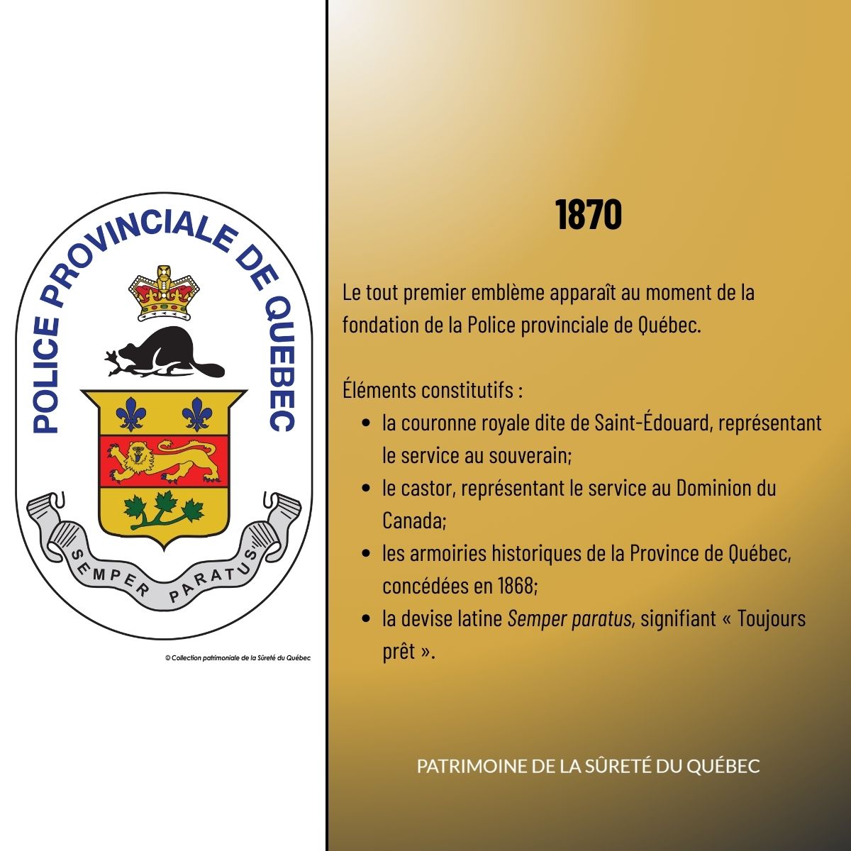 Depuis la fondation de la Police provinciale le 1er mai 1870, l’emblème joue un rôle identitaire central au sein de l’organisation. Sa force réside dans sa symbolique et son caractère unique qui soulève fierté et sentiment d’appartenance à la SQ.