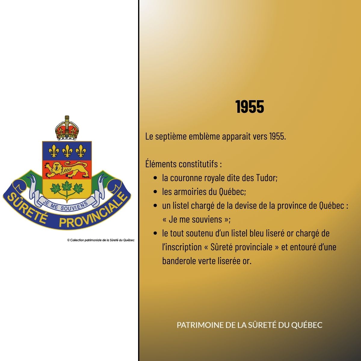 Il est connu et reconnu à travers le monde. L’emblème de la Sûreté est plus qu’un symbole car il raconte l’histoire de notre institution ainsi que celle du Québec. En cette Semaine de la police, le Centre du patrimoine de la Sûreté du Québec (SQ) vous propose de remonter dans le temps, du tout premier emblème à celui que nous arborons de nos jours.