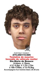 La Sûreté du Québec, en collaboration avec le Service de police de la Ville de Lévis, demande l’aide de la population afin d’identifier un individu d’environ 18 ans (voir portrait-robot en pièce jointe).